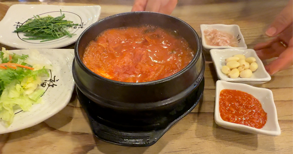 白菜や大根など具材たっぷりで、ほぼフルサイズのチゲも出てきます。
