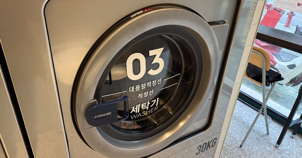 宿泊しているフェアフィールド・バイ・マリオット・ソウルからは徒歩3分程度にあるコインランドリーです。