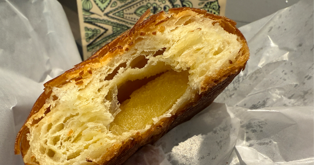 生地の表面はパリパリで期待通りですが、フィリングはカスタードっぽいけど違う食感で何か分からない・・・。(美味しいです)