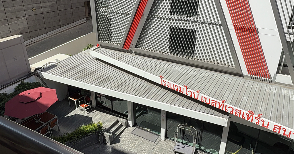 通路に出ると、正面に見える建物がVIB ベスト ウェスタン サナームパオです。