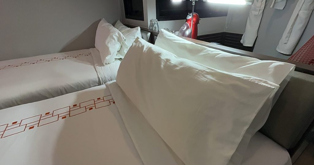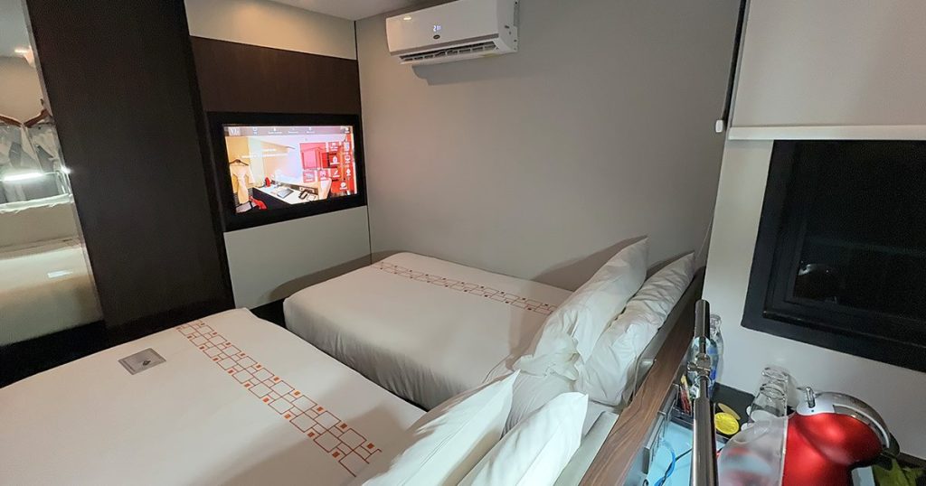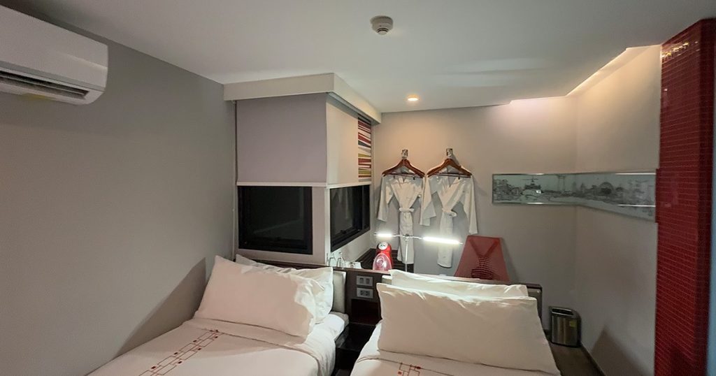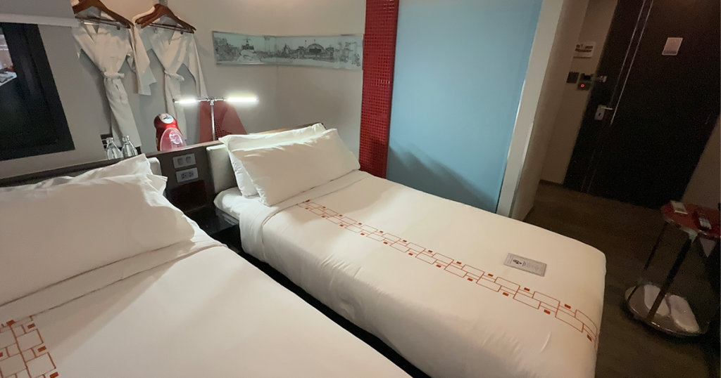 ベッドはシングルベッドが2つなので、ベッド自体の横幅も狭めです。
