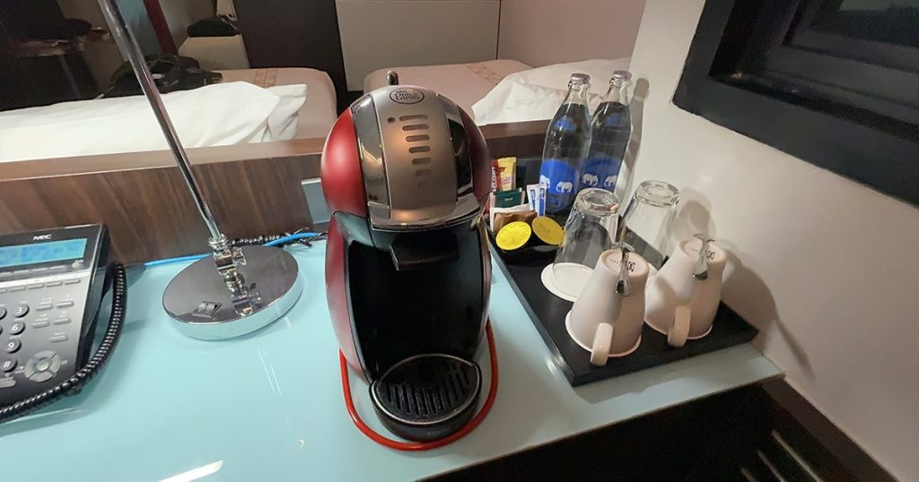 お茶セットにはポットがありませんが、ドルチェグストとカプセルが2つ用意されています。