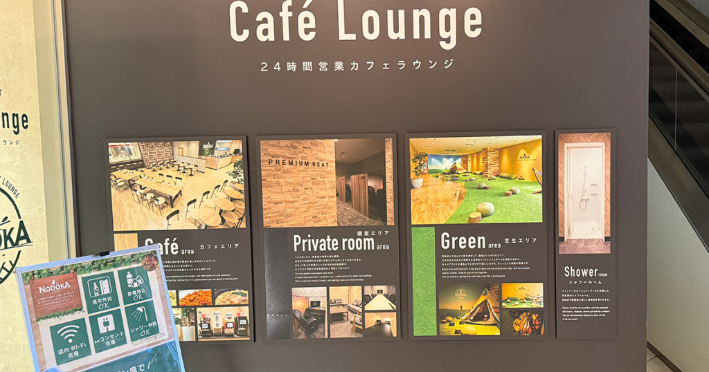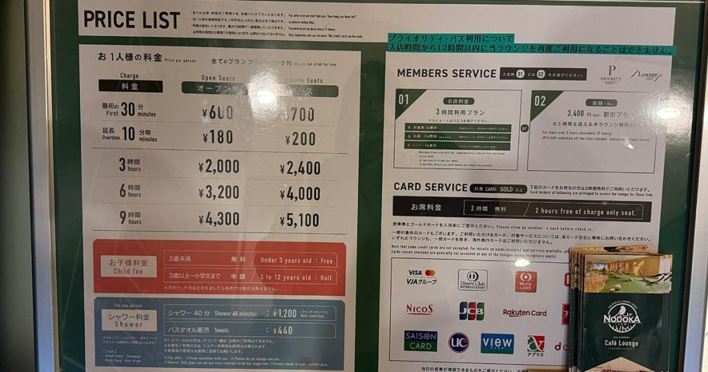 ネットカフェの類としては一般的なサービスだと思いますが、NODOKAは関西国際空港の施設内にあって、ラウンジサービスのプライオリティ・パスやクレジットカードのゴールドラウンジサービスの提供場所なっています。