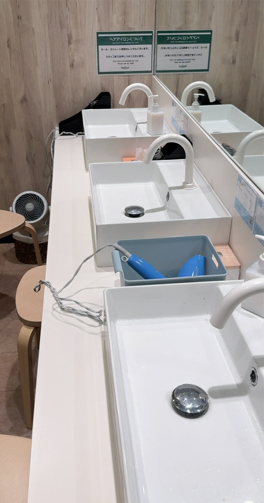 40分は女性には短いと思いますので、自分のスペースでしっかり準備してから鍵を借りに行くと良いと思います。(お手洗いは別スペースなので、鍵を借りする前に済ませておくのがオススメ!)