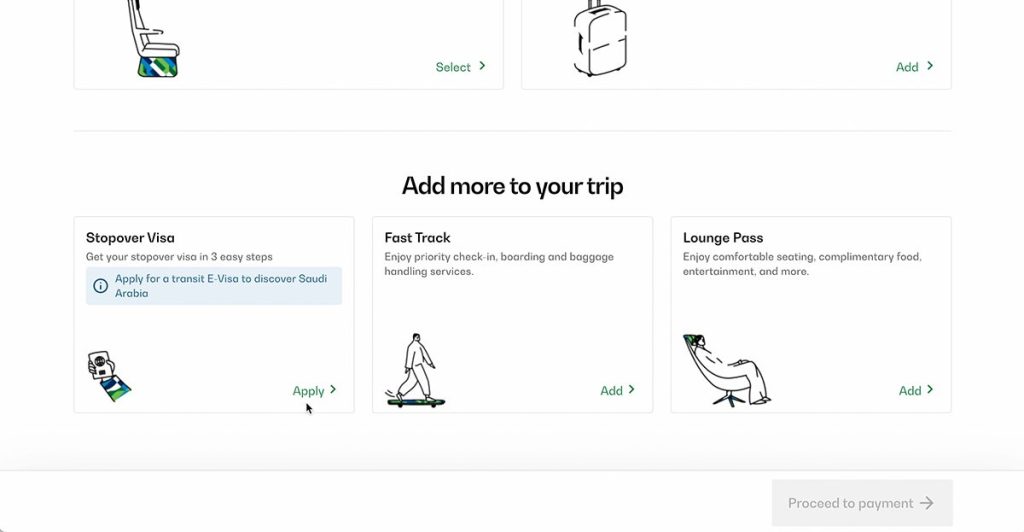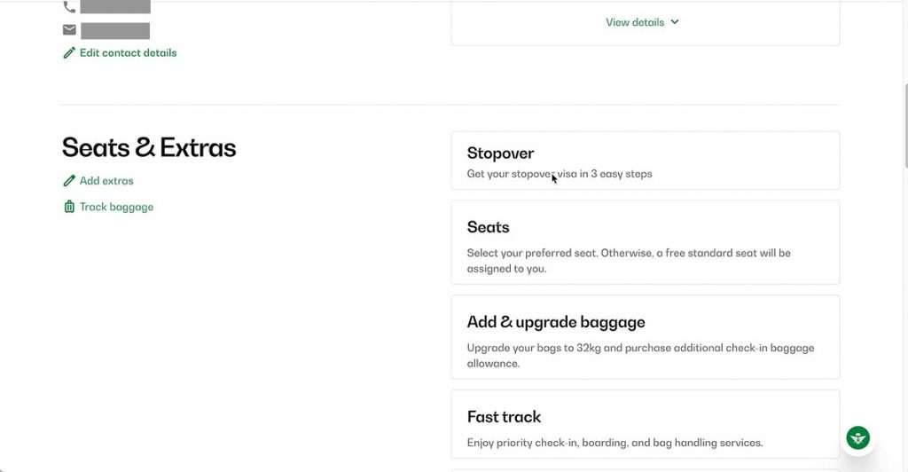 Seats&ExtrasのセクションにあるStopoverを選択します。