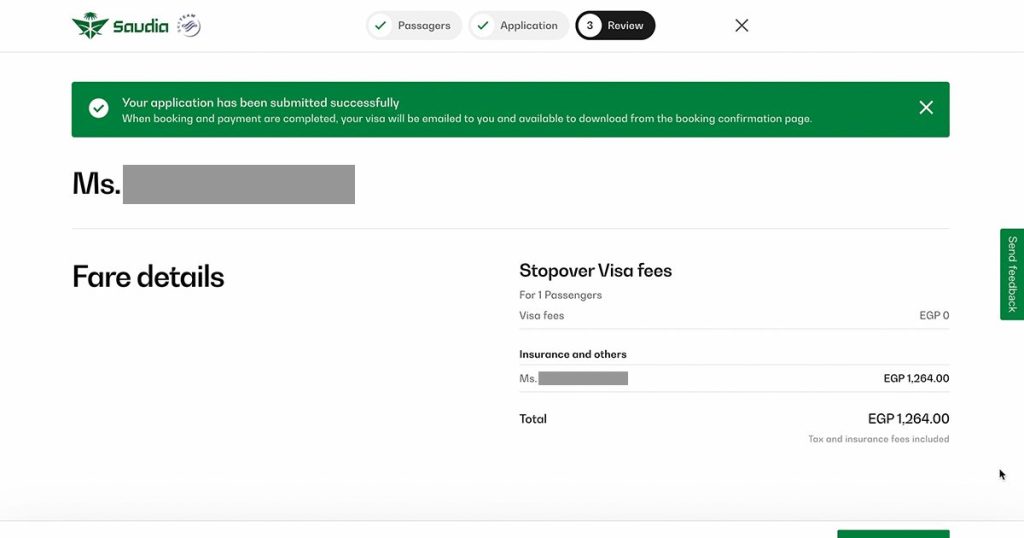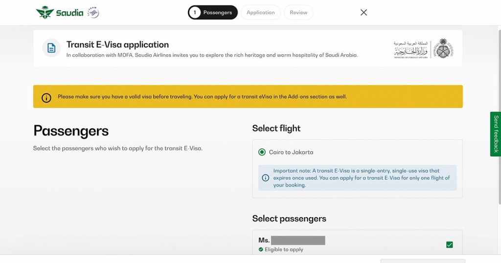 3日以内のストップオーバービザの申請手続きをサウディアで