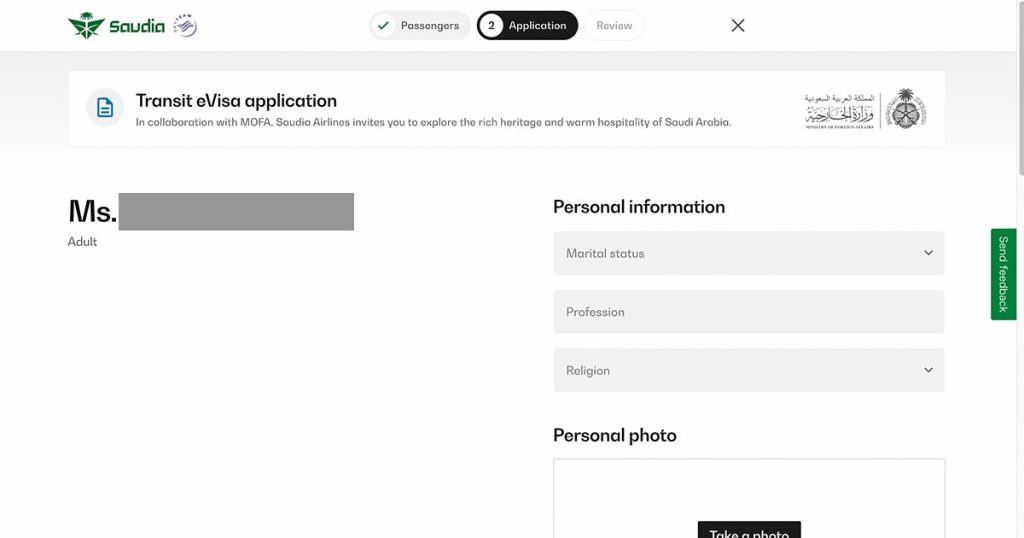 サウディアでサウジアラビアストップオーバービザを途中まで申請進めてみた